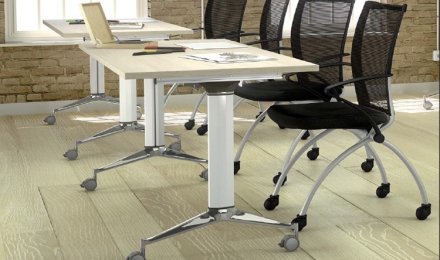 Mesas reclináveis para salas de reuniões e colectividades.