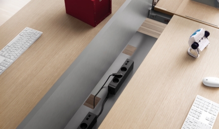 Fruto da evolução de nosso sistema de desenvolvimento e estudo, nasce Flat D. Procuramos conjuntar novas superfícies de trabalho, de estética minimalista e com um grande poder tecnológico. Sobres deslizantes com materiais de melamina, estratificados, HDF e fenólicos; todos eles com perfis metálicos trapezoidais de 50 e 60 mm de largura.